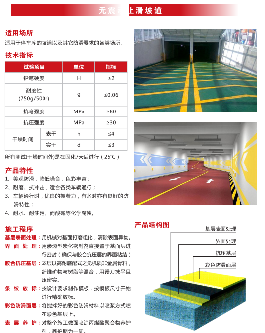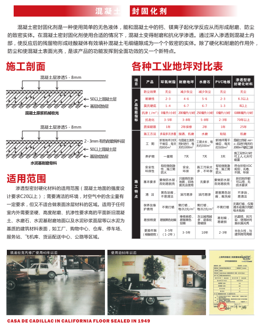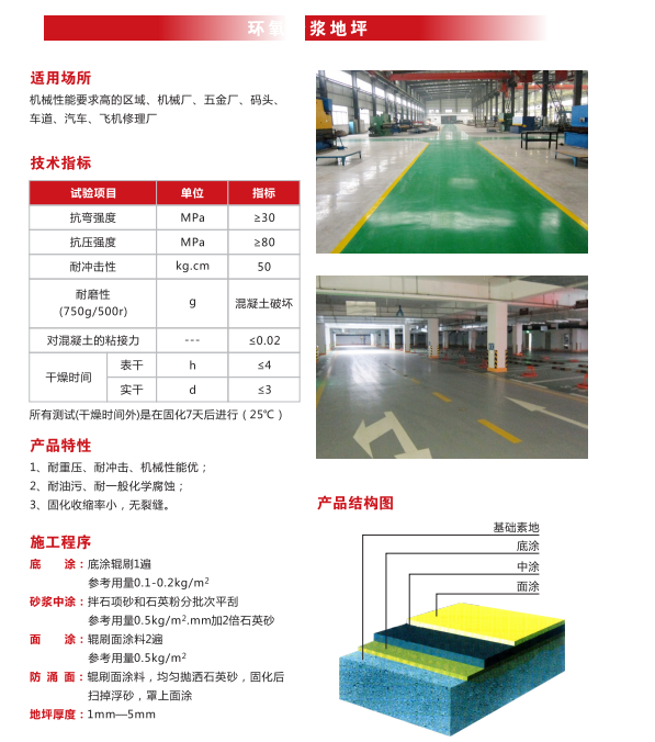 根據(jù)不同的使用功能需求、現(xiàn)場施工條件、地域差異等因素,公司主要涉及產(chǎn)品分為:混凝土密封固化劑系列、環(huán)氧樹脂地坪漆涂裝系列、PVC卷材系列、運(yùn)動球場涂裝系列、停車場交通標(biāo)識系列、巖棉保溫防火復(fù)合板外保溫系列等。