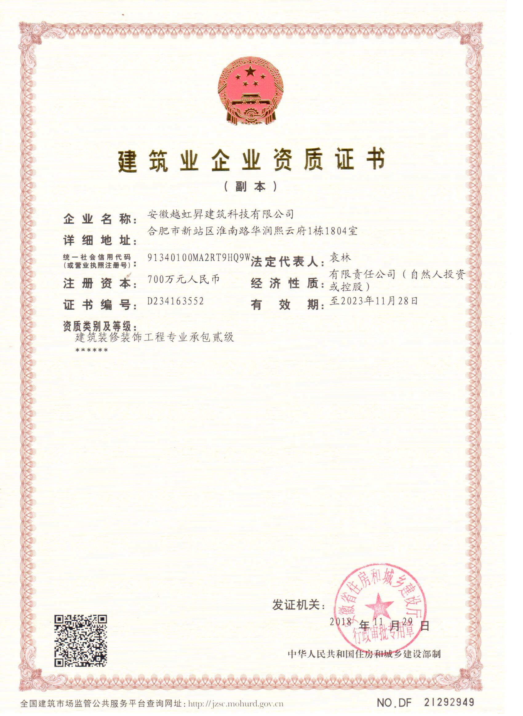 建筑企業(yè)資質(zhì)證書